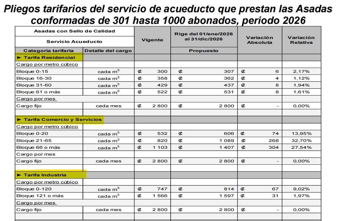 PLIEGOS TARIFARIOS 2026 – ASADA SURFSIDE